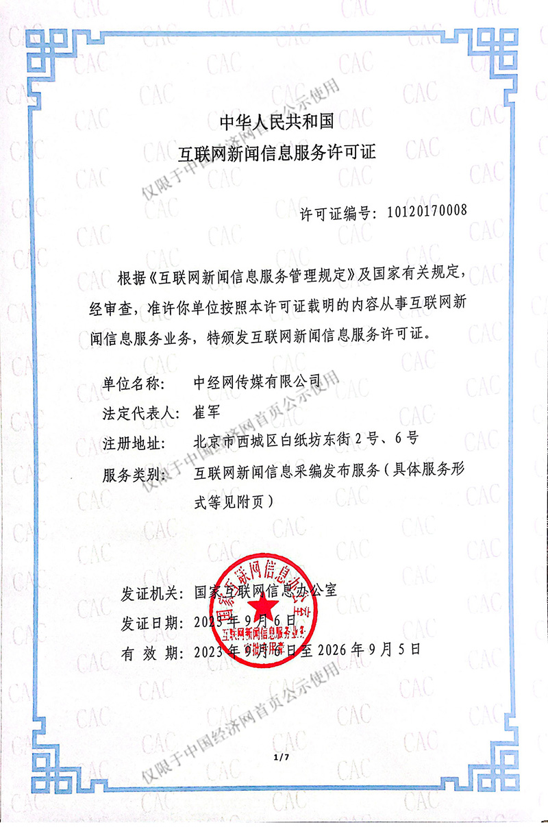 中國經(jīng)濟網(wǎng)《互聯(lián)網(wǎng)新聞信息服務(wù)許可證》公示
