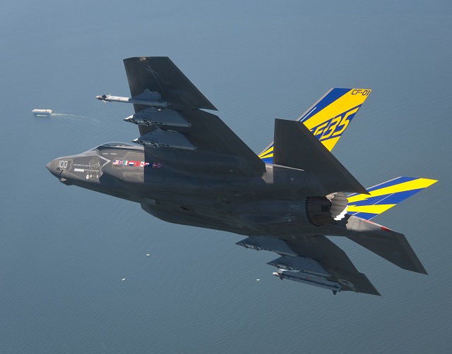 據美國海軍航空系統司令部2012年7月3日報道 艦載型F-35戰機于6月27日完成了首次掛載外部武器的飛行。海軍試飛員駕駛編號CF-1的飛機,掛載AIM-9X“響尾蛇”導彈以測試飛行參數和飛機共振情況。