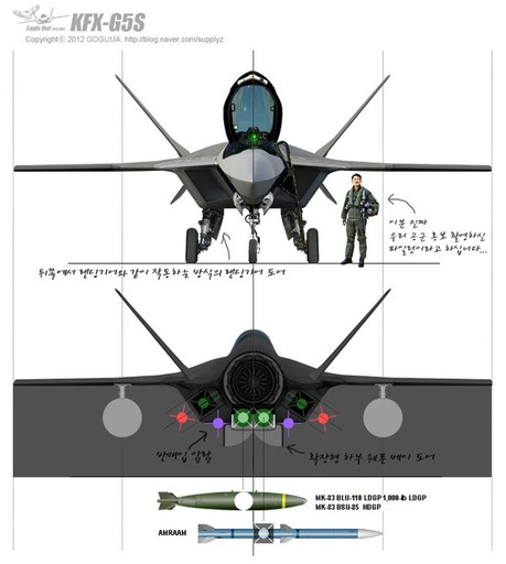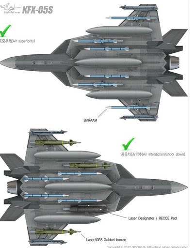韓國公布的這組KFX-G5S戰機圖片中的另一關(guān)鍵技術(shù)要點(diǎn)是,有別于之前任何一款第五代戰機方案,韓國似乎在構想KFX-G5S型戰機之初,就將外部掛載視作主要性能,而非像美制第五代戰機那樣,將外部掛載視作特殊情況下的無(wú)奈之舉。從韓國為KFX-G5S戰機規劃的掛載方案來(lái)看,作為輕型戰機的KFX-G5S,在無(wú)內部掛載的情況下,外掛點(diǎn)超過(guò)10個(gè),基本達到F-16戰機的水平。如果再考慮第五代戰機較之第四代戰機較大的內部空間帶來(lái)的機內載油優(yōu)勢,KFX-G5S型戰機的外掛能力應在F-16之上。