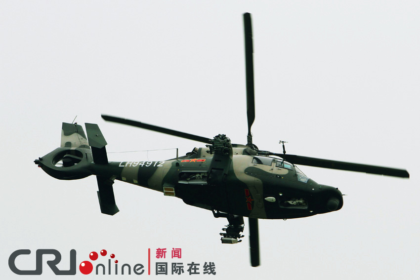 解放軍直-9WZ武裝直升機進(jìn)行飛行表演。戴爽 攝