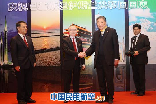 3月21日,在巴基斯坦國慶日來(lái)臨之際,巴基斯坦駐中國大使館在北京舉辦巴基斯坦國慶日招待會(huì )。巴基斯坦駐華大使馬蘇德哈立德代表巴基斯坦總統向7位為增進(jìn)巴中關(guān)系而做出重要貢獻的中國公民授予獎?wù)。其中,中航工業(yè)董事長(cháng)林左鳴被授予巴基斯坦“卓越之星”國家榮譽(yù)獎?wù),以表彰林左鳴董事長(cháng)為推動(dòng)中巴兩 國航空合作、推進(jìn)巴基斯坦航空事業(yè)做出的貢獻。