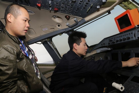 局方試飛員與試飛工程師進(jìn)行檢飛前檢查。