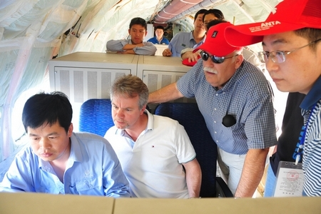 FAA、CAAC審查代表在飛機機艙內審查試飛相關(guān)數據。