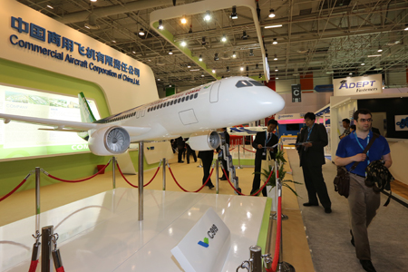 中國商飛公司攜C919客機模型參加巴黎航展