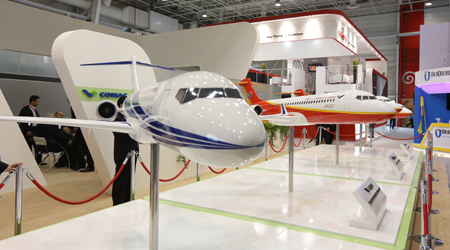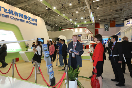 這是中國商飛公司第2次參加巴黎航展,中國商飛展臺位于巴黎航展展館5號館B片區,面積約250平方米,展示了C919大型客機模型和ARJ21-700飛機模型。在此次展示的飛機模型中,全面展示了C919大型客機混合級布局,ARJ21-700飛機混合級、全經(jīng)濟級、行政機和公務(wù)機布局。