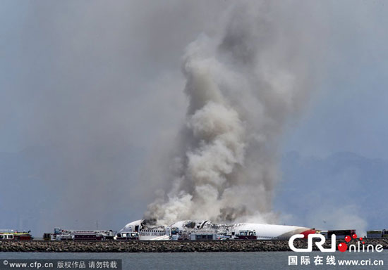 當地時(shí)間2013年7月6日,韓亞OZ214航班在美國舊金山機場(chǎng)降落時(shí)墜毀。圖片來(lái)源:CFP/John Green