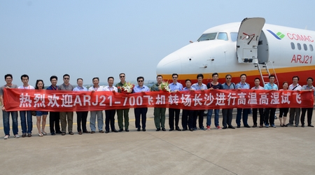 中國經(jīng)濟網(wǎng)航空訊 據中國商飛公司報道,2013年7月15日上午10時(shí)19分,ARJ21-700飛機103架機從閻良中國試飛院機場(chǎng)起飛,由試飛員劉宏亮、郭寶駕機,經(jīng)過(guò)1小時(shí)38分的轉場(chǎng)飛行,于11時(shí)57分順利抵達長(cháng)沙,標志著(zhù)2013年高溫高濕試飛正式拉開(kāi)帷幕。按照計劃,103架機將進(jìn)行環(huán)控、液壓等系統相關(guān)科目的試飛和地面試驗。