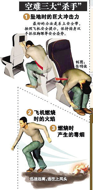 但飛機失事常在瞬間,如果在高空,除非能順利迫降,否則一旦墜毀往往同時(shí)引發(fā)爆炸,旅客生還的幾率極小。從這個(gè)層面上來(lái)說(shuō),空難的后果又是最嚴重的。但不少對逃生常識一知半解的旅客懷有僥幸心理,對起飛前空姐的演示和機上的逃生手冊視而不見(jiàn),一些慣坐飛機的旅客對逃生設備的使用方法也不熟。