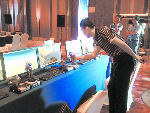 操控系統近年來(lái)取得長(cháng)足進(jìn)步。圖為觀(guān)眾體驗無(wú)人機操控