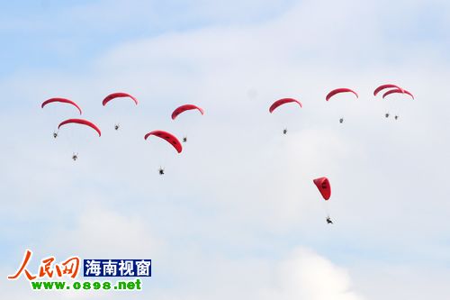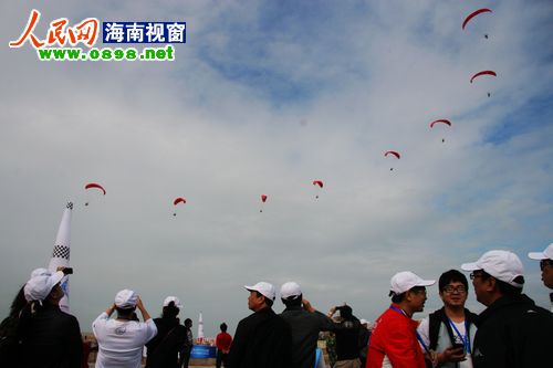21日上午8點(diǎn)左右,經(jīng)過(guò)一天的休整,2011環(huán)海南島飛行拉力賽東方段在東方市邊貿城正式開(kāi)幕。比起前幾日的大風(fēng)天氣,今天的風(fēng)速明顯減弱,在?谖茨芘c廣大市民和游客見(jiàn)面的熱氣球、動(dòng)力傘、動(dòng)力三角翼今天也終于如愿升空,在東方的碧海藍天間盡情的翱翔。大批東方市民趕到現場(chǎng),一幕幕精彩的飛行表演引得現場(chǎng)尖叫連連、掌聲不斷。