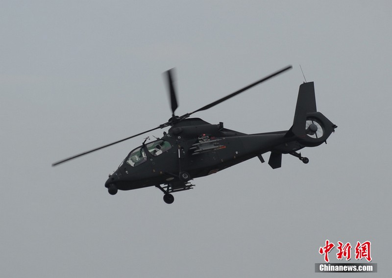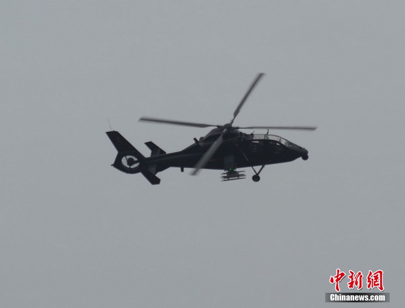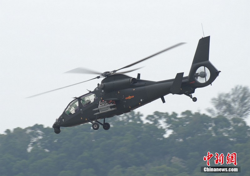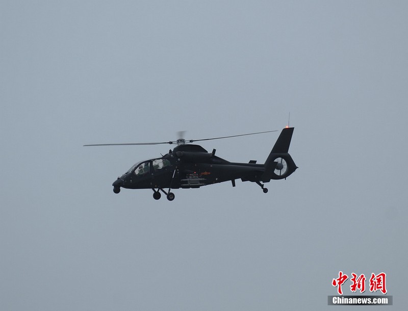 中新網(wǎng)珠海11月11日電(陳海峰) 中國陸航直19武裝直升機11日在珠海航展上空進(jìn)行了精彩的飛行表演。