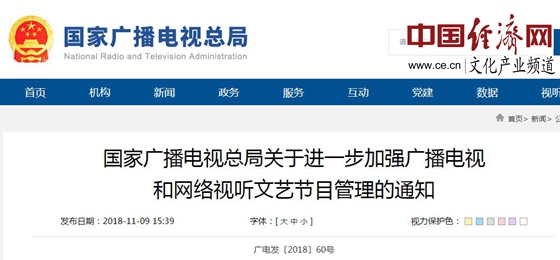經(jīng)濟日報-中國經(jīng)濟網(wǎng)北京11月20日訊 日前,國家廣播電視總局發(fā)布了《關(guān)于進(jìn)一步加強廣播電視和網(wǎng)絡(luò )視聽(tīng)文藝節目管理的通知》(以下簡(jiǎn)稱(chēng)“通知”)?!锻ㄖ分赋?,一些文藝節目出現了影視明星過(guò)多、追星炒星、泛娛樂(lè )化、高價(jià)片酬、收視率(點(diǎn)擊率)造假等問(wèn)題,不僅推高制作成本、破壞行業(yè)秩序生態(tài),而且誤導青少年盲目追星,滋長(cháng)拜金主義、一夜成名等錯誤價(jià)值觀(guān)念,必須采取有效措施切實(shí)加以糾正。