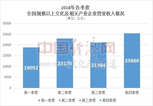 經(jīng)濟日報-中國經(jīng)濟網(wǎng)記者回顧了2018年發(fā)布的4份《規模以上文化及相關(guān)產(chǎn)業(yè)生產(chǎn)經(jīng)營(yíng)季度報告》后發(fā)現,2018年第四季度全國規模以上文化及相關(guān)企業(yè)營(yíng)業(yè)收入最高。