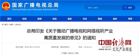 總局發(fā)文推動(dòng)廣播電視和網(wǎng)絡(luò )視聽(tīng)產(chǎn)業(yè)高質(zhì)量發(fā)展