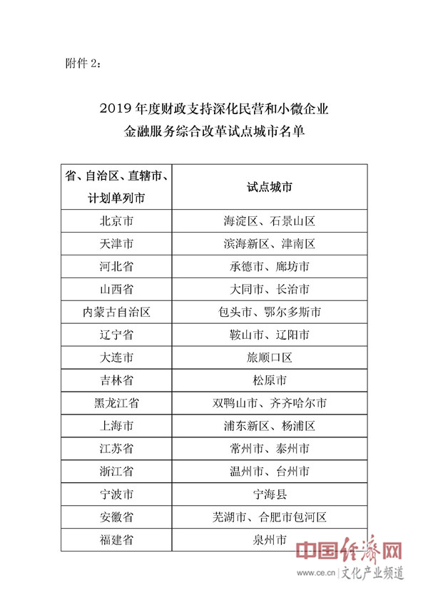 59個(gè)市(州、區)入選2019年度財政支持深化民營(yíng)和小微企業(yè)金融服務(wù)綜合改革試點(diǎn)城市
