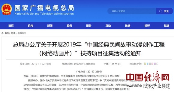 總局辦公廳關(guān)于開(kāi)展2019年“中國經(jīng)典民間故事動(dòng)漫創(chuàng )作工程(網(wǎng)絡(luò )動(dòng)畫(huà)片)”扶持項目征集活動(dòng)的通知