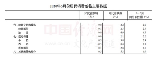 經(jīng)濟日報-中國經(jīng)濟網(wǎng)北京6月12日訊 近日,國家統計局發(fā)布2020年5月份CPI數據。2020年5月份,全國居民消費價(jià)格同比上漲2.4%,非食品價(jià)格同比上漲0.4%;全國居民消費價(jià)格環(huán)比下降0.8%,非食品價(jià)格環(huán)比持平。其中,教育文化和娛樂(lè )價(jià)格同比上漲2.2%,環(huán)比持平。
