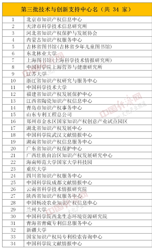 以下為《第三批技術(shù)與創(chuàng )新支持中心名單》: