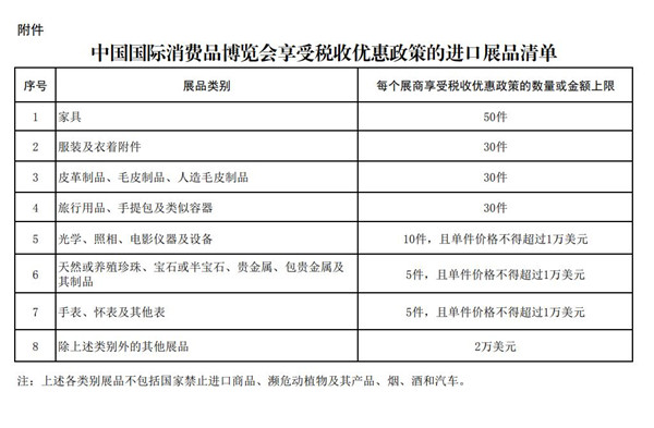 附件:中國國際消費品博覽會(huì )享受稅收優(yōu)惠政策的進(jìn)口展品清單