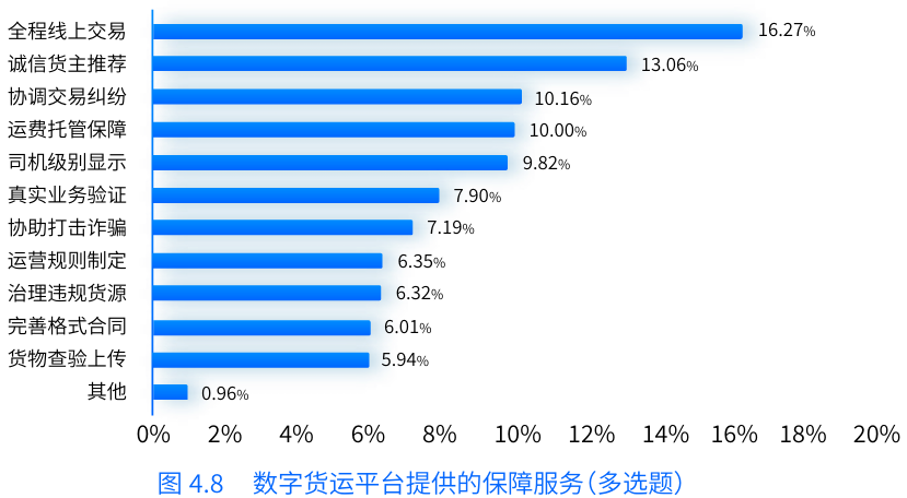 貨車(chē)司機全程線(xiàn)上交易的比例最高,占16.27%。大多數司機傾向于直接在平臺完成“接單-收款”全過(guò)程,以此降低交易的風(fēng)險和不確定性。