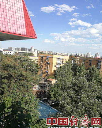 圖為藍條白云下的北京市西城區白紙坊東街2號。