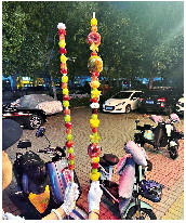 “從50cm到150cm都可訂制,最近開(kāi)始在網(wǎng)上走紅,不少人覺(jué)得拍照好看?!钡曛骼钆拷榻B,每天都是滿(mǎn)單,一周能賣(mài)上百串。從早穿到晚都忙不過(guò)來(lái),需要提前兩天預訂。