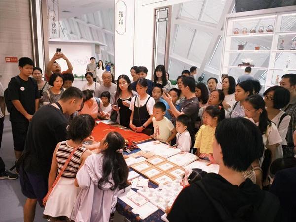 2024年7月,廣東省非物質(zhì)文化遺產(chǎn)館,游客在“解憂(yōu)年畫(huà)鋪”了解佛山木版年畫(huà)。