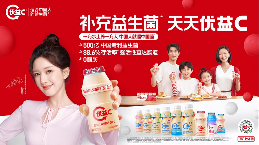 優(yōu)益C “適合中國人的益生菌”,連續四年品牌力行業(yè)第一。優(yōu)益C全線(xiàn)產(chǎn)品使用中國專(zhuān)利益生菌PC-01, 斬獲第二十四屆中國專(zhuān)利銀獎及2023年度國家科學(xué)技術(shù)進(jìn)步獎二等獎,是目前乳業(yè)在專(zhuān)利領(lǐng)域唯一且最高榮譽(yù)。優(yōu)益C 100ml暢快新品行業(yè)首創(chuàng )的5株復合中國益生菌,上市后好評席卷各大平臺。通過(guò)分眾媒體曝光、小優(yōu)尋菌之路主題營(yíng)銷(xiāo)、大優(yōu)奧運主題營(yíng)銷(xiāo)拉近與消費者的距離,“一方水土養一方人,中國人就補中國益生菌”的概念深入人心,備受消費者喜愛(ài)。
