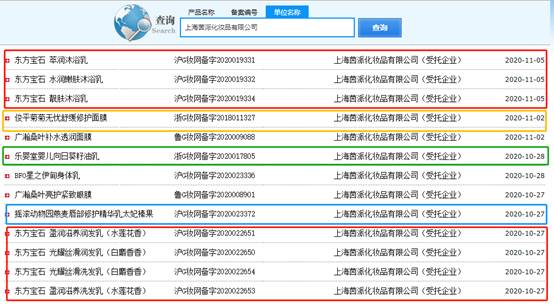 記者查詢(xún)國產(chǎn)非特殊用途化妝品備案平臺得知,上海茵派化妝品有限公司是紅地球明星草本精華卸妝水、俊平永久花純露、稚優(yōu)泉嘭潤保濕清清水、樂(lè )嬰堂嬰兒山茶油霜等近500款產(chǎn)品(包含已注銷(xiāo))的生產(chǎn)企業(yè)。