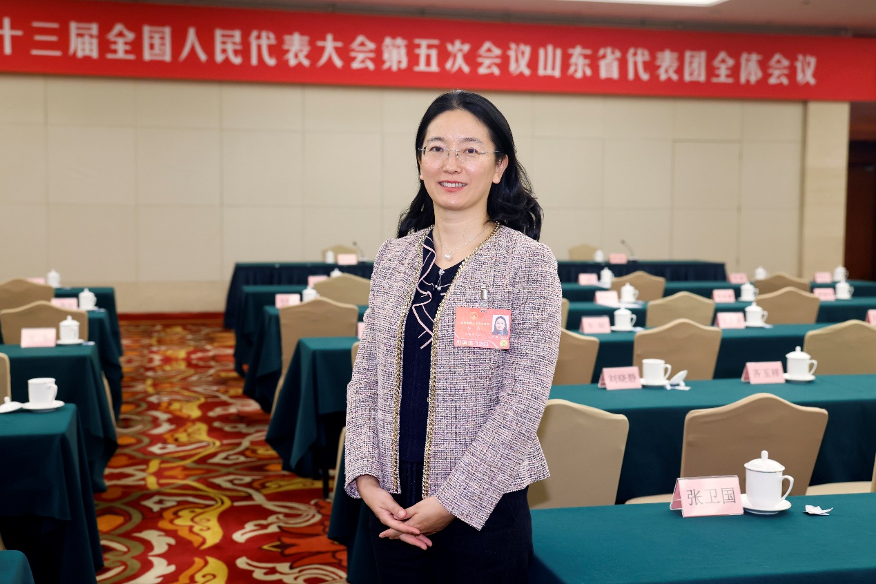 全國人大代表、齊魯制藥集團總裁李燕在十三屆全國人民代表大會(huì )第五次會(huì )議山東省代表團全體會(huì )議現場(chǎng)。圖片由受訪(fǎng)者提供。
