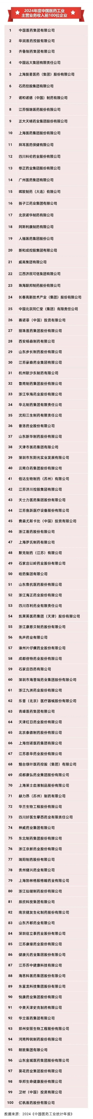2024年度中國醫藥工業(yè)主營(yíng)業(yè)務(wù)收入前100位企業(yè)名單揭曉(附名單)