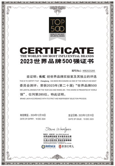 1219日,世界品牌實(shí)驗室(World Brand Lab2023年度《世界品牌500強》排行榜揭曉,48個(gè)中國品牌入榜,中國企業(yè)長(cháng)虹排名世界品牌榜第285位,較2022年上升1位。同時(shí),中國國航、長(cháng)虹、海爾智家等35個(gè)領(lǐng)軍品牌入選“2023年中國品牌年度大獎”。