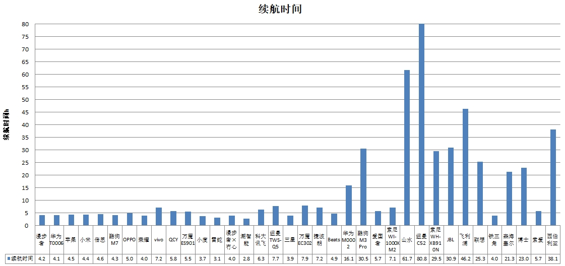 無(wú)線(xiàn)耳機的續航能力由無(wú)線(xiàn)耳機的續航時(shí)間和充電時(shí)間兩項指標呈現,各種類(lèi)型的耳機有很大差別。
