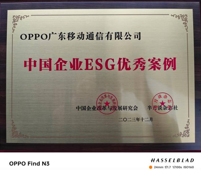 ESG重塑企業(yè)價(jià)值 OPPO榮獲“2023中國企業(yè)ESG優(yōu)秀案例”