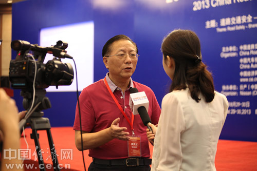 由中國道路交通安全協(xié)會(huì )、中國汽車(chē)技術(shù)研究中心和中國經(jīng)濟網(wǎng)共同主辦的“2013中國道路交通安全論壇”于8月29日在北京首都大酒店舉行。圖為2013中國道路交通安全論壇與會(huì )嘉賓接受中國經(jīng)濟網(wǎng)記者郭樅樅采訪(fǎng)。中國經(jīng)濟網(wǎng) 裴小閣 攝影
