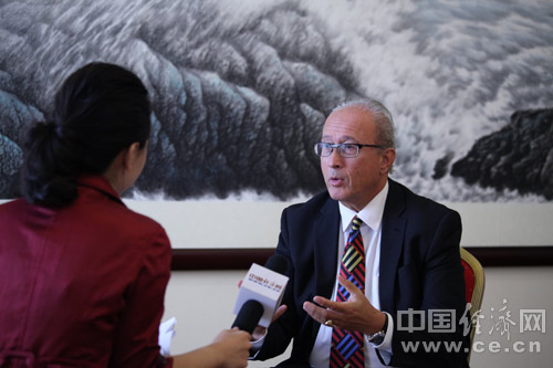 由中國道路交通安全協(xié)會(huì )、中國汽車(chē)技術(shù)研究中心和中國經(jīng)濟網(wǎng)共同主辦的“2013中國道路交通安全論壇”于8月30日在北京首都大酒店舉行。圖為國際道路交通安全協(xié)會(huì )主席高斯接受中國經(jīng)濟網(wǎng)記者采訪(fǎng)。中國經(jīng)濟網(wǎng) 裴小閣/攝