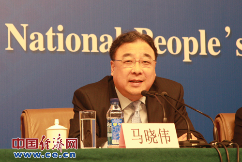 十二屆全國人大一次會(huì )議新聞中心3月14日(星期四)下午3時(shí)在梅地亞中心多功能廳舉行主題為“醫藥衛生體制改革”的記者會(huì )。圖為衛生部副部長(cháng)、國務(wù)院深化醫藥衛生體制改革領(lǐng)導小組辦公室副主任馬曉偉。中國經(jīng)濟網(wǎng) 秦宇雯 攝影